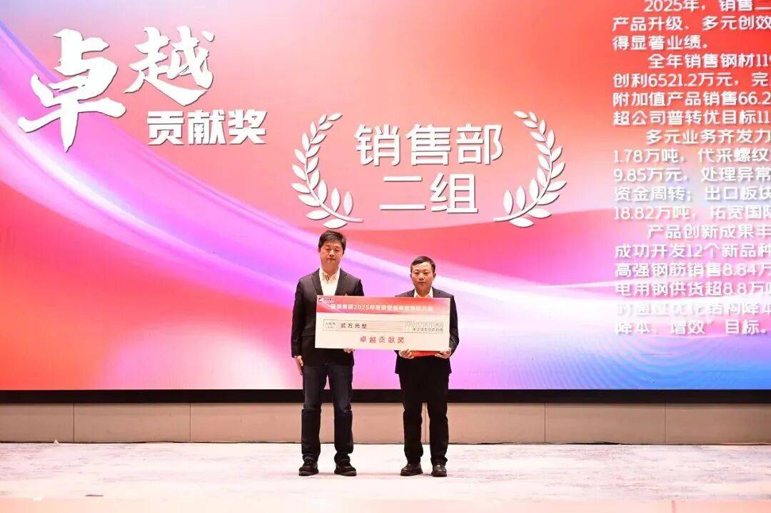 卓越贡献奖(销售部·二组):聚焦高附加值产品营销与新市场开拓,成功主导了新产品开发、出口业务拓展及多元创效等项目。