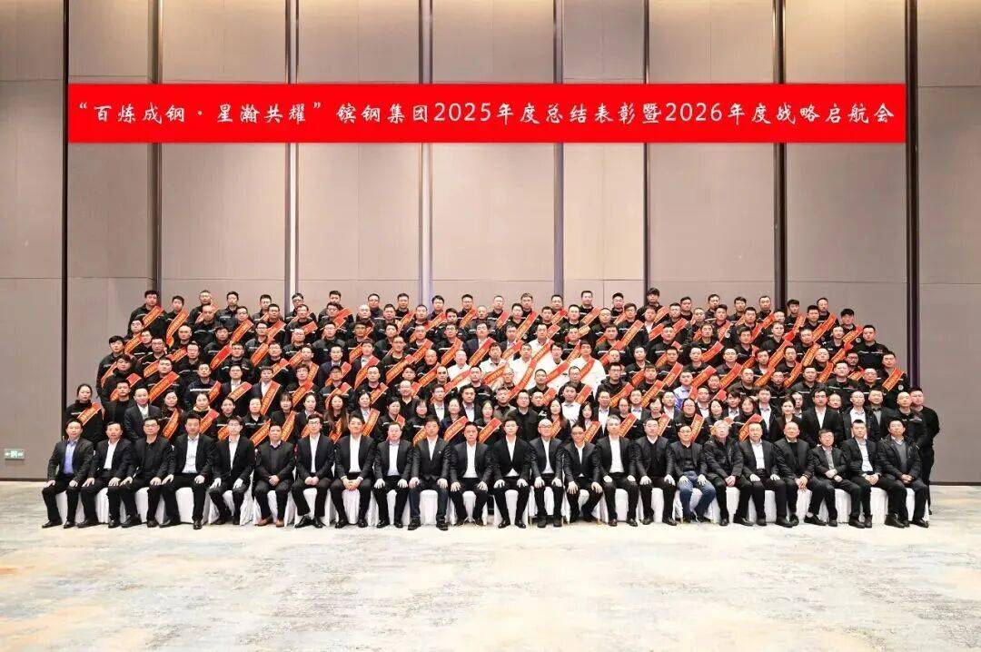 大会在激昂的闭幕致辞与全员“星瀚全家福”合影中圆满礼成。荣耀属于过去,奋斗成就未来。镔钢人已整装集结,在“星瀚战略”的指引下,共赴2026壮阔山海!