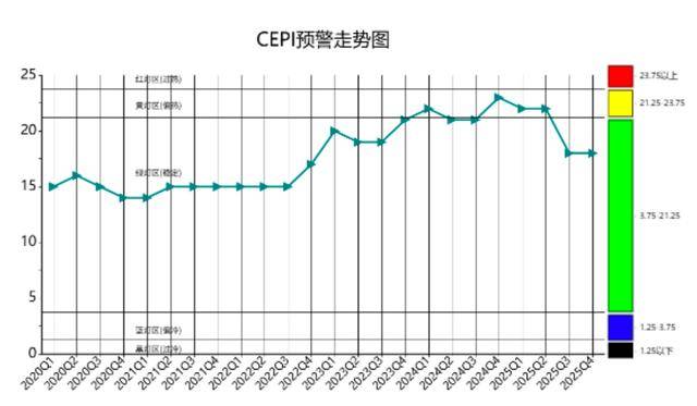 从预警走势来看,自2025年第三季度CEPI预警指数回落至绿灯区后,第四季度仍在绿灯区平稳运行。